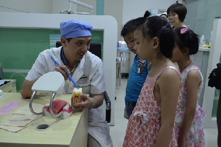 【小朋友们在接受了牙科周斌主任培训后,当起了爱牙日“小牙医” 图二】