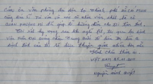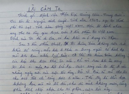 首先我要感谢彭主任以及广州现代医院的各位医生,给像我这样穷困的病人尽心尽力进行治疗。在我出院回越南之后,也正好是2011辛卯年的春节,但医生依然打电话询问我的病情和指引我如何照顾自己。我无比地感动,我要再一次感谢胡志明市办事处,感谢咨询医生和各位工作人员,特别是关凤媚小姐给我的热情服务和指引。