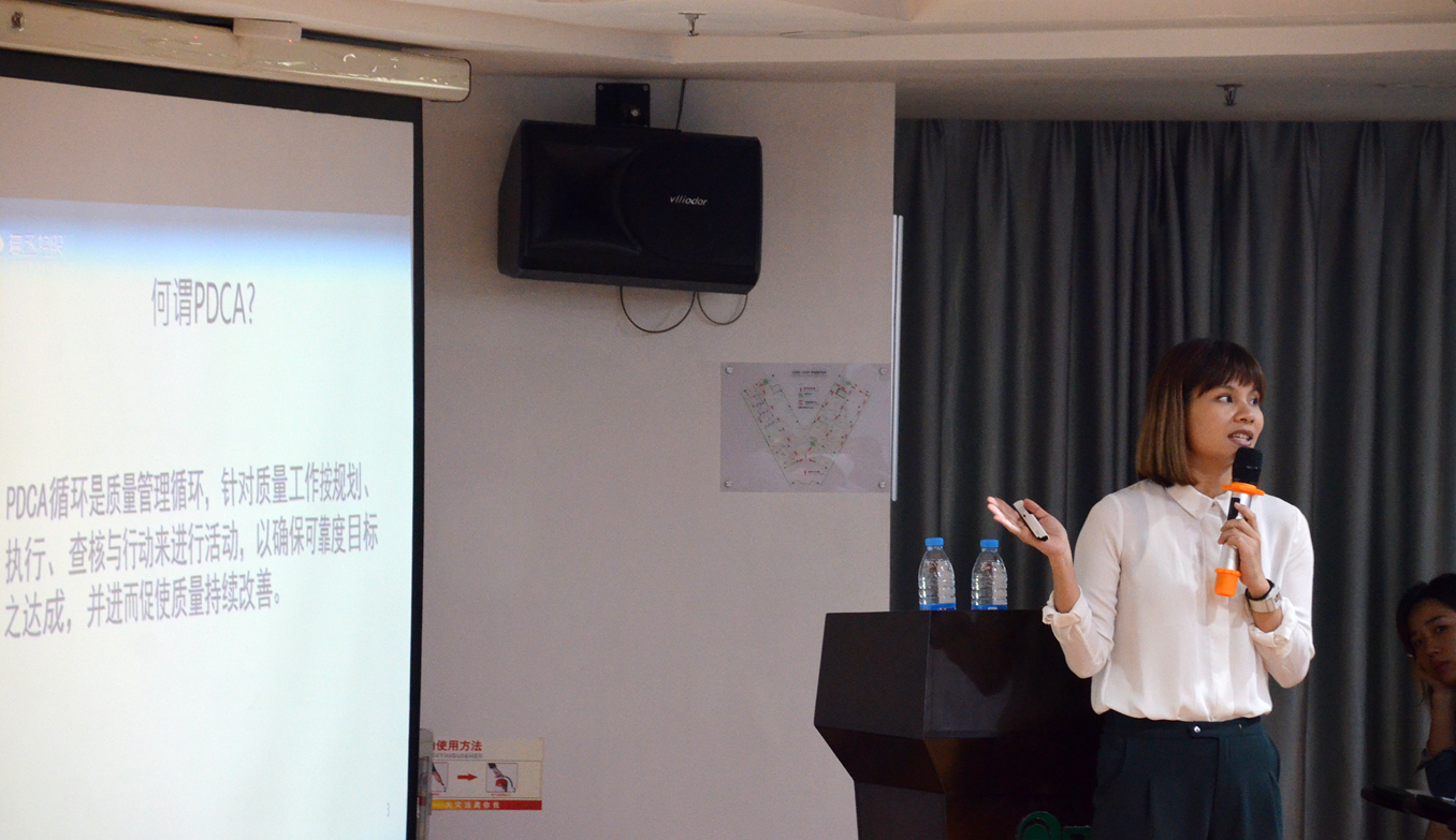 周懿平老师讲述到,PDCA循环包括:目标与计划制定、计划执行、计划执行的检核、计划调整与处置四个环节。她表示,要通过团队运作来强化PDCA循环的效果。“团队检视可以使目标与计划更加合理周全;团队需定期追踪目标达成的状况并给予建议;团队要支持组员的态度,毫无保留给予意见;达成目标后,团队要给予赞美与奖赏。”