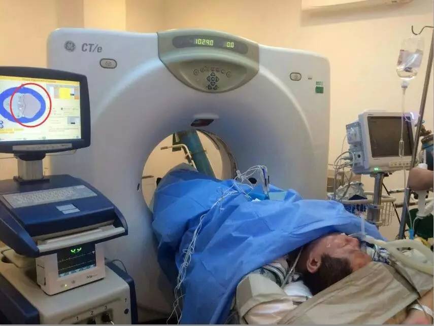 白海山主任正在为患者的肝脏肿瘤实行布针穿刺