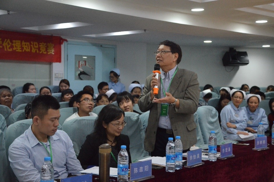 在辩论环节,专业评委许宏基院长对每个案例都做出了点评,他表示:“本次的竞赛活动十分精彩,令我十分惊讶,每一组的医护人员对医学伦理原来都有这么独到的见解。参赛选手能够从宗教信仰、有利原则、人道原则、自主原则、重生原则等角度进行论证,表明大家对医学伦理知识有着深刻理解。广州医院伦理建设做得非常好,已经超出了JCI的水平,能很好的确保人文医疗关怀到位,医疗质量安全等等,值得其他医院学习”。